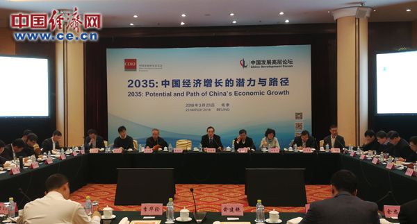 经济日报-中国经济网北京3月23日讯 今日,中国发展高层论坛2018学术论坛暨博智宏观论坛年会在北京举行。国务院发展研究中心原副主任、中国发展研究基金会副理事长刘世锦主持会议并发表主旨演讲。会议发布了博智宏观论坛中长期发展课题组撰写的“2035:中国经济增长的潜力与路径”报告。国家统计局原副局长许宪春、中银国际研究公司董事长曹远征、中国经济改革研究基金会国民经济研究所副所长王小鲁等40余位经济领域的知名专家、学者和30余位企业界代表出席会议。